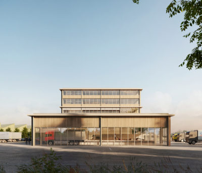 L’expression architecturale est marquée par la structure en bois, en référence à la tradition des bâtiments industriels et d’ateliers aux grandes portées. La combinaison maîtrisée du bois et du béton associe efficacité constructive, économie des moyens et clarté architecturale dans une expression unitaire.