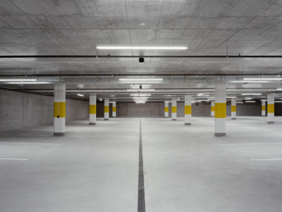 Die Konstruktion zeigt sich bewusst sichtbar: Beton bildet das robuste, ruhige Gehäuse, Holz prägt als Reihung vorgefertigter Rahmen den Ausdruck der Hallenkörper. Eine massive Betonspange steift die Baukörper quer aus und verbindet die „weichen“ Holzstrukturen. Die Fassaden setzen auf gliedernde Holzschalungen, feine Kanten und ein differenziertes Spiel aus Tiefe, Oberflächen und Licht. Im Zusammenspiel entsteht ein kompakter, identitätsstiftender Baukörper, der im Zentrum zugleich Präsenz und Leichtigkeit vermittelt.