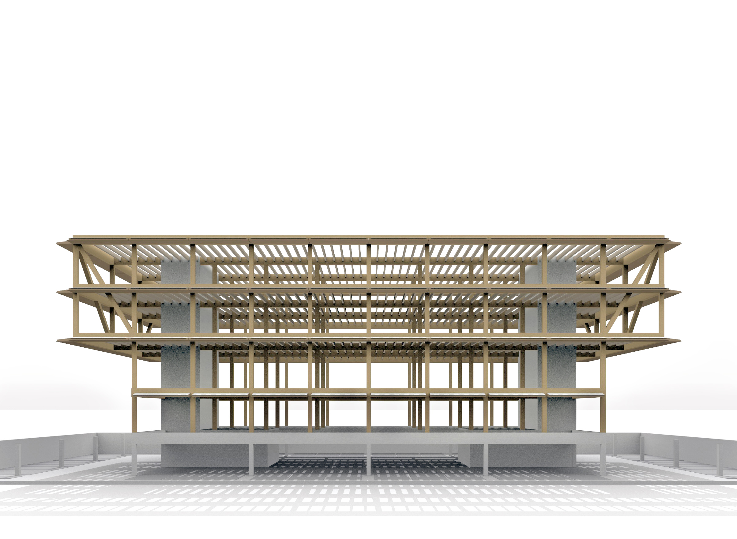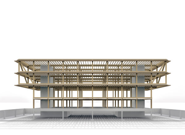 Das Tragwerk trennt die Materialien klar: Stahlbeton für die Einstellhalle, Holz für die oberen Geschosse. Auf einem regelmässigen Raster, einem hohen Vorfertigungsgrad und lösbaren Verbindungen basierend, unterstützt das Projekt eine zirkuläre Bauweise. Die Holz-Metall-Fassade optimiert Tageslicht, natürliche Lüftung und Sonnenschutz. So entsteht ein robustes, flexibles und ressourcenschonendes Schulhaus, das den heutigen Alltag ebenso wie zukünftige Entwicklungen aufnehmen kann.